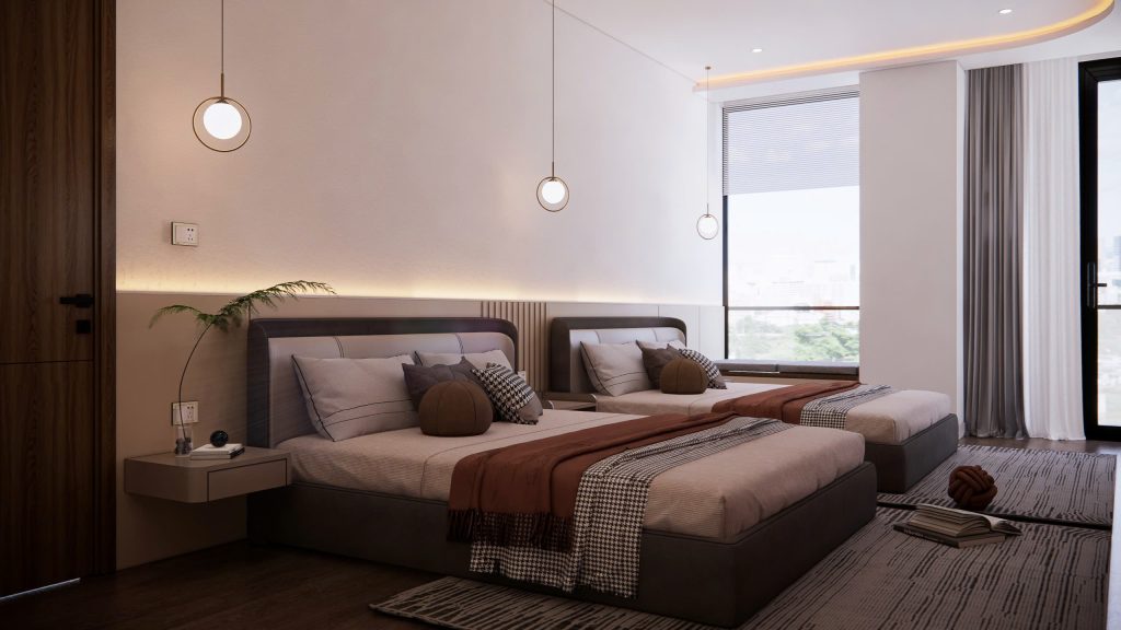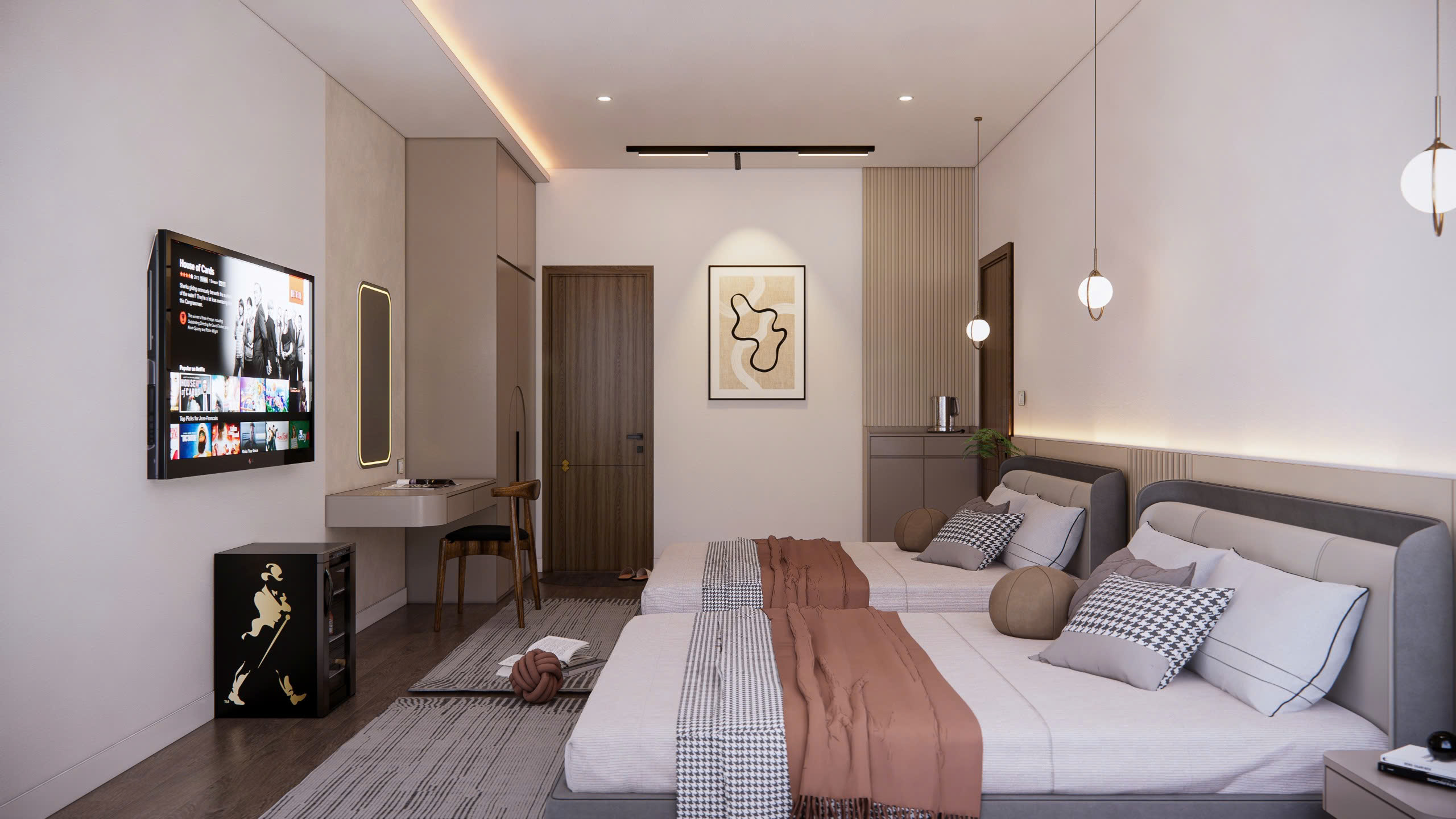 Phòng tiêu chuẩn dành cho 2–4 khách, trang bị giường đôi 1m6. Không gian riêng tư, thoải mái – lý tưởng cho chuyến công tác hoặc nghỉ ngơi ngắn ngày.